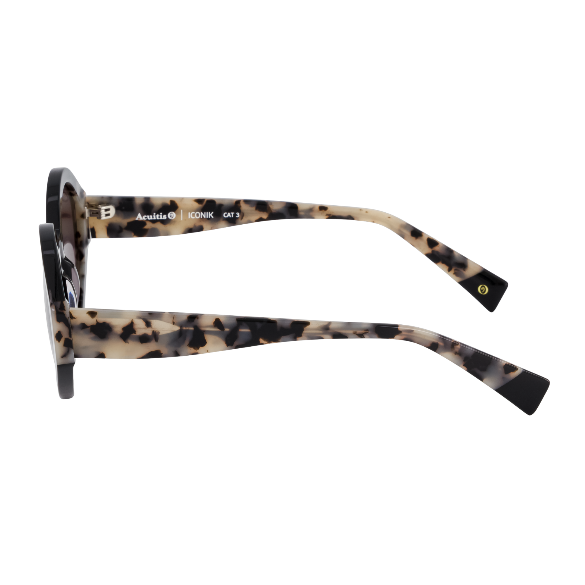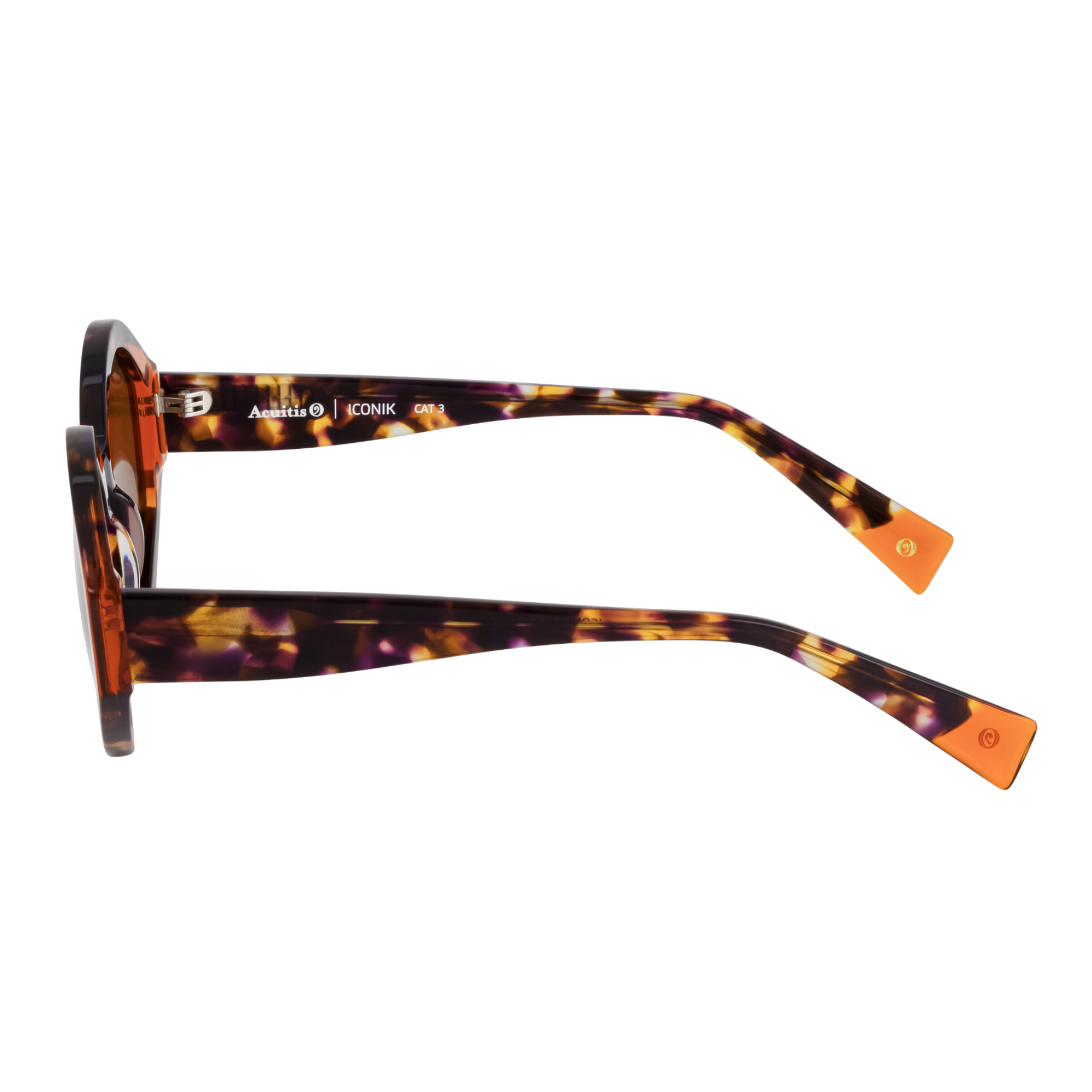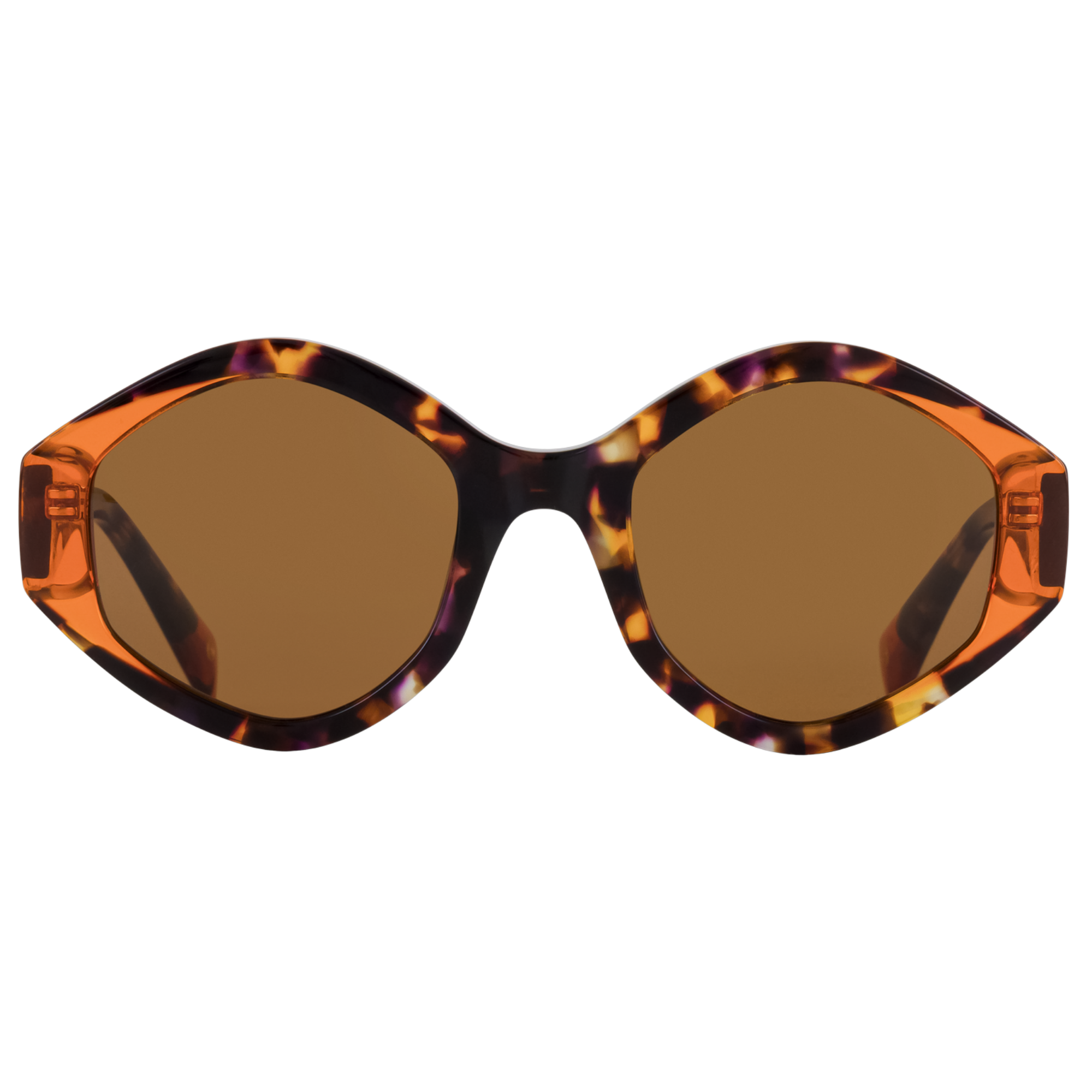 Monture solaire oversize à la géométrie affirmée. Le jeu de laminations colorées entre plaques translucides et écailles teintées crée un effet matière raffiné. Une esthétique au...