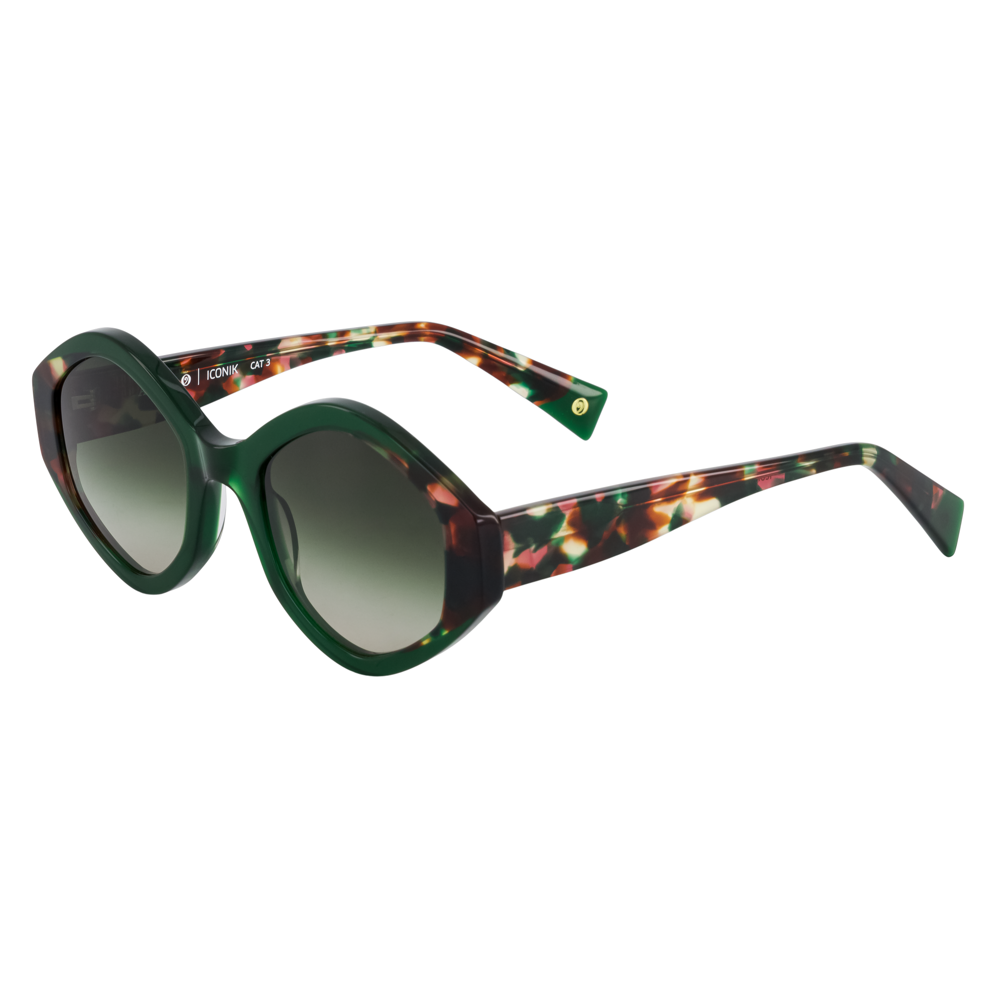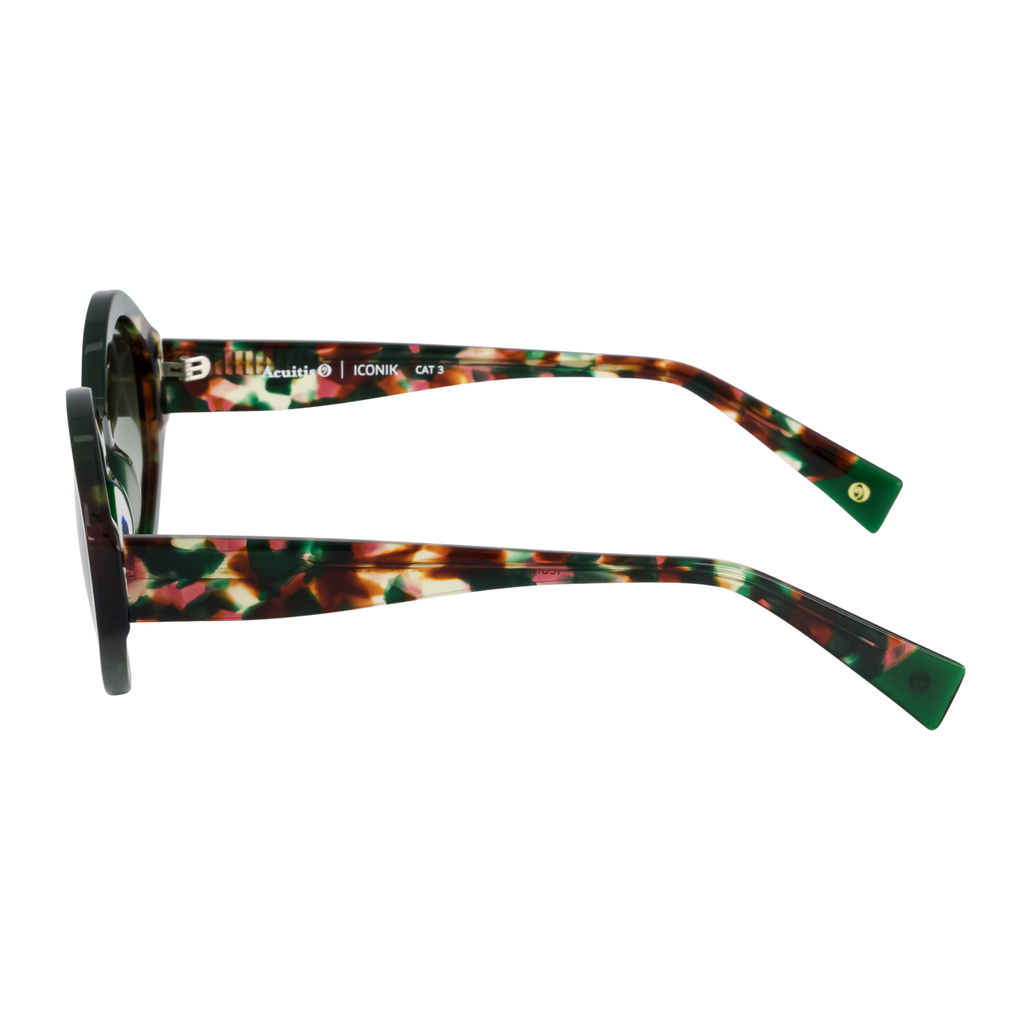 Monture solaire oversize à la géométrie affirmée. Le jeu de laminations colorées entre plaques translucides et écailles teintées crée un effet matière raffiné. Une esthétique audacieuse, enrichie de teintes organiques comme le vert sauge et la terracotta.