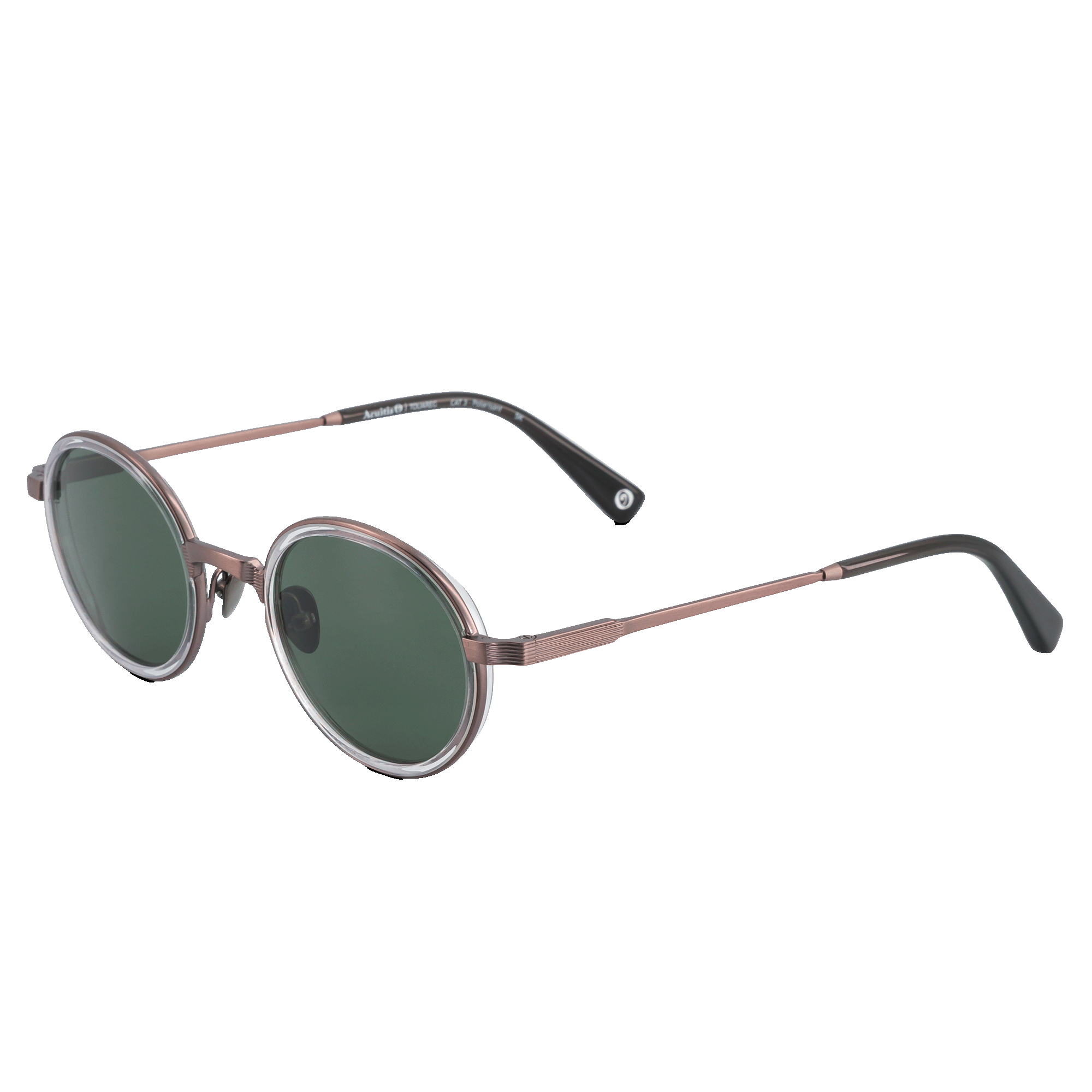 Monture ovale contemporaine combinée, de taille standard, associant finesse métallique et inserts d’acétate coqués. Les gravures détaillées sur le pont, les branches et les tenons soulignent une élégance technique et raffinée. Déclinée en écaille, corne verte, cristal transparent et gris opal, avec finitions métal gun, or et argent.
